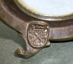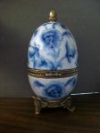 This pretty blue and white hinged egg was a Mother's day gift a few years ago..It has a faded marking on the ceramic bottom and a stamped "seal" on the metal footing dated 1866 with initials of H W.. Any help would be wonderful and appreciated!