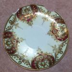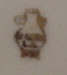 I have searched and searched but cannot find this mark, not sure which category to put this in. It looks like a two handle water pitcher. I cannot make out the letters but it looks like an M something, and underneath L.A. Please help if you can. this is a beautiful little plate, unfortunately it is damaged, but I am still on a quest for who/what the mark is. This is as clear a photo as I could get, the mark itself is just not real clear. Thanks for any help